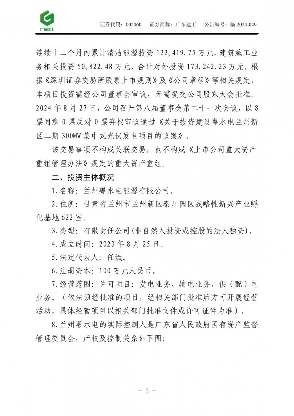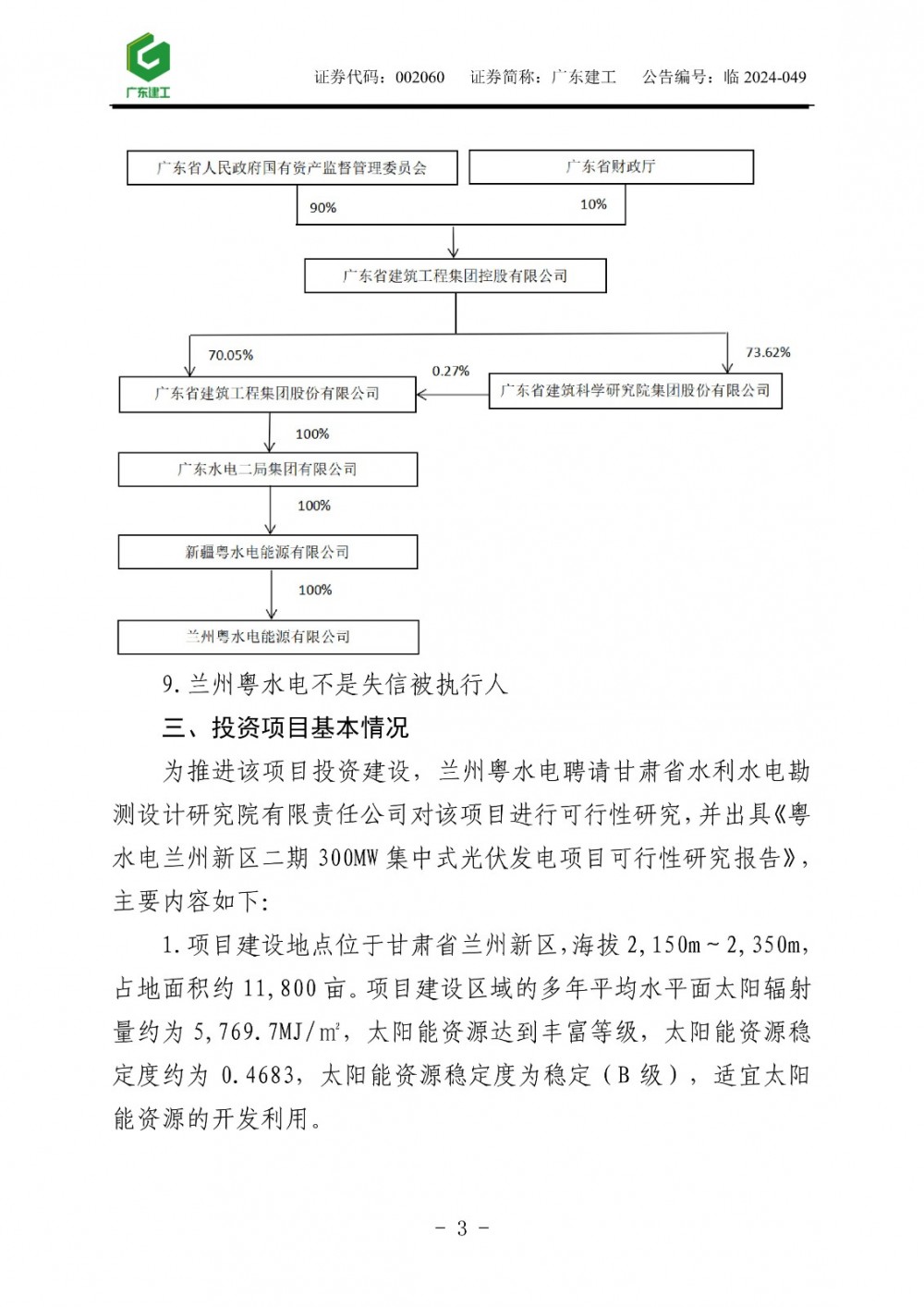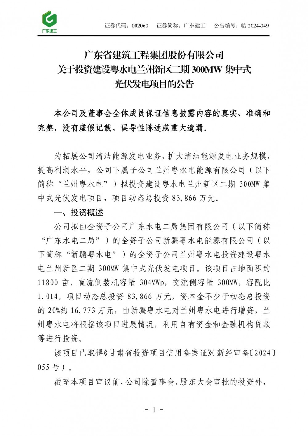8月27日晚间,广东建工发布关于投资建设粤水电兰州新区二期300MW集中式光伏发电项目的公告。