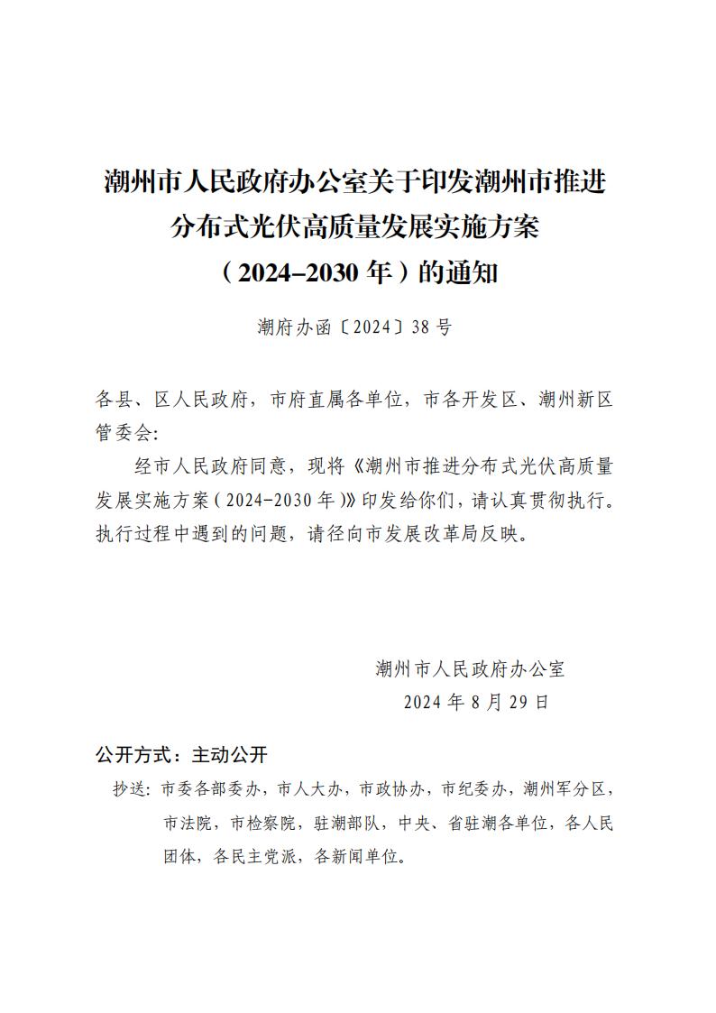 9月2日,广东省潮州市人民政府印发潮州市推进分布式光伏高质量发展实施方案(2024-2030年)的通知。