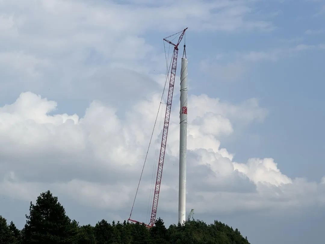 大唐贵州大风坪34兆瓦技改项目塔筒顺利吊装完成