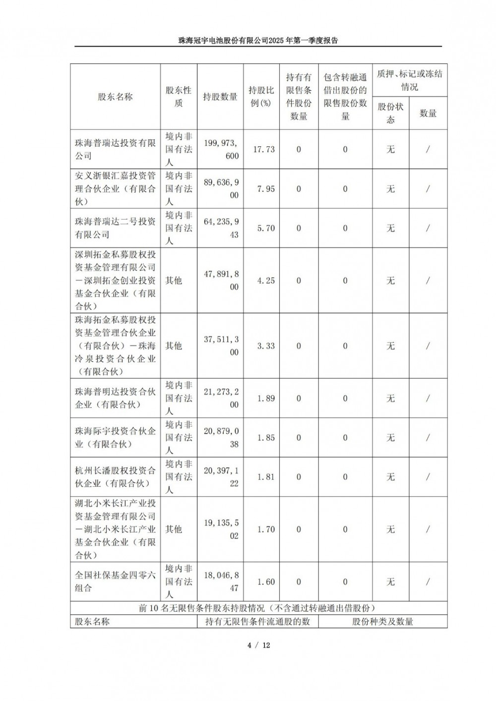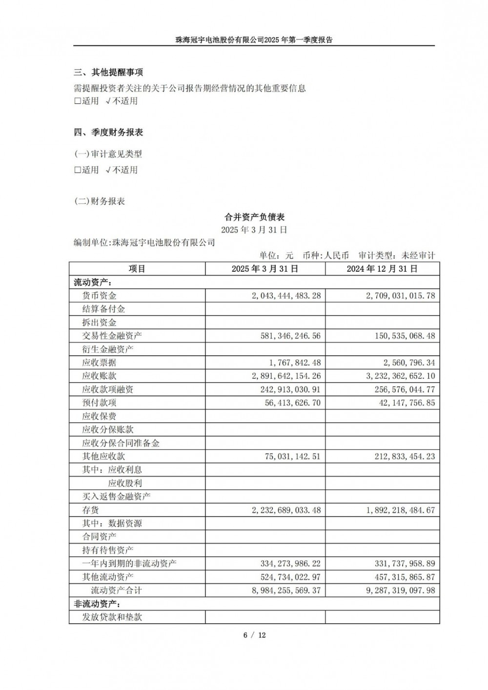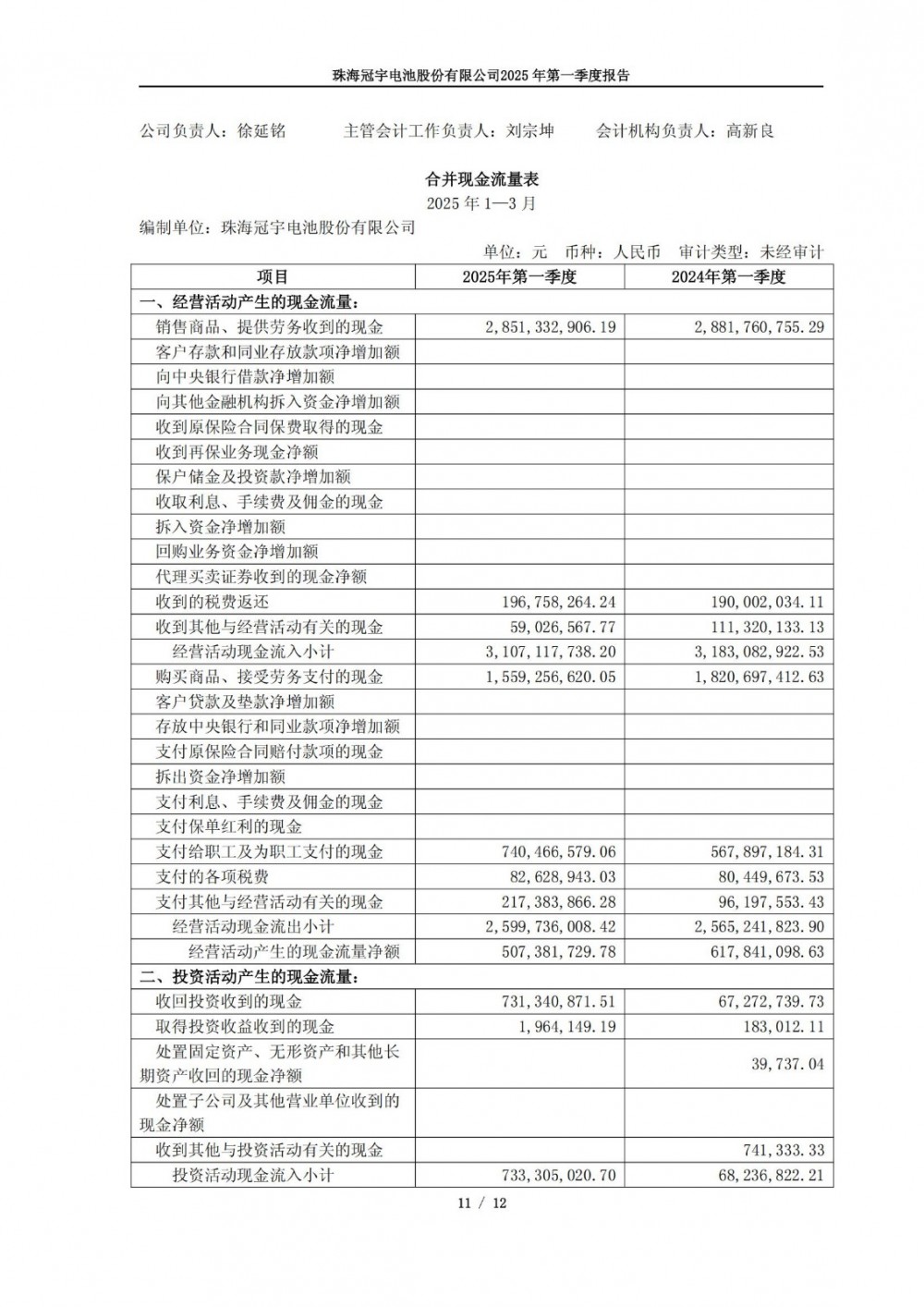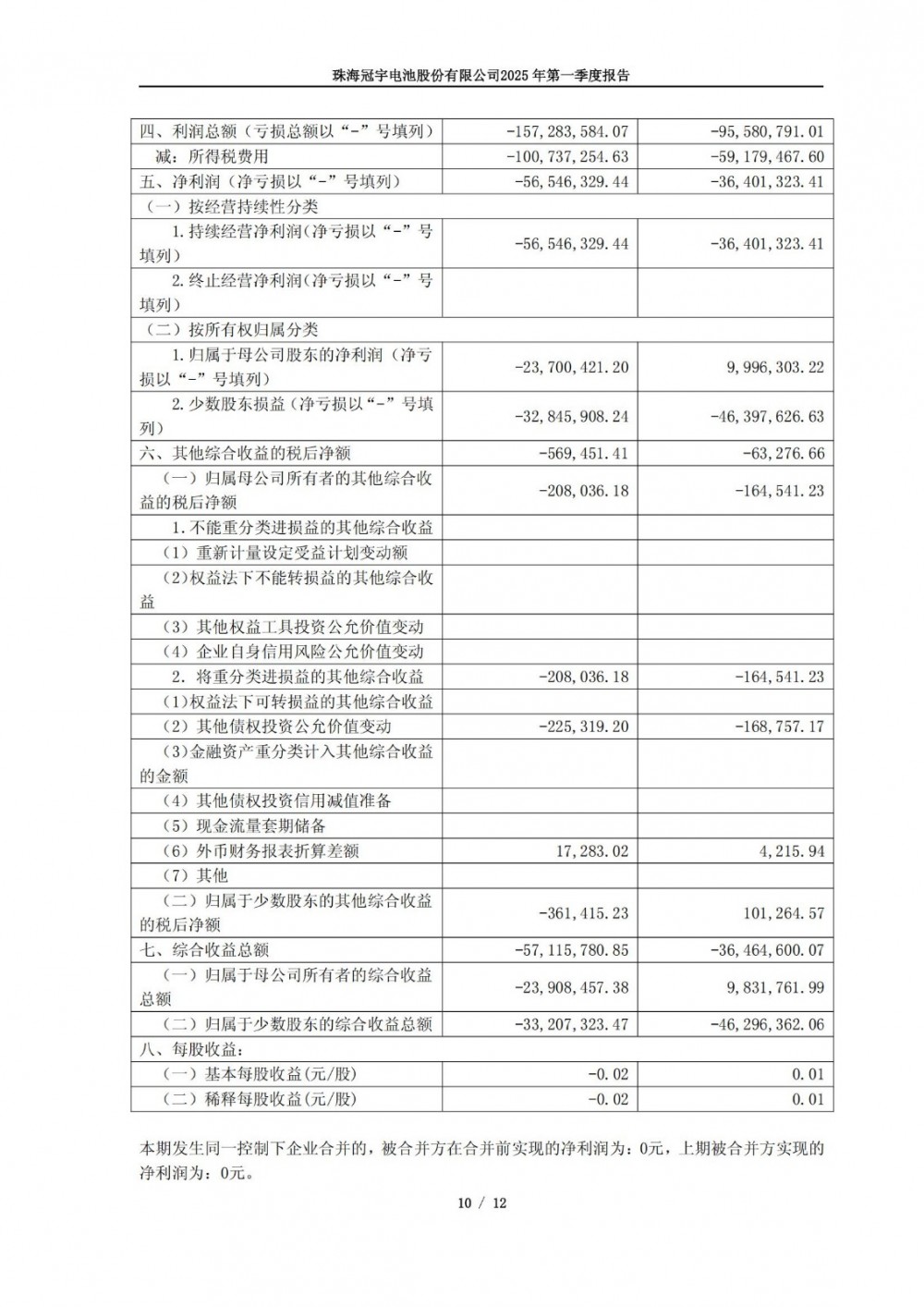 2025年一季度,珠海冠宇实现营业总收入24.98亿元,同比上涨1.98%;归母净利润亏损2370.04万元,同比下降337.09%;扣非净利润亏损4919.72万元,上年同期亏损1630.96万元。