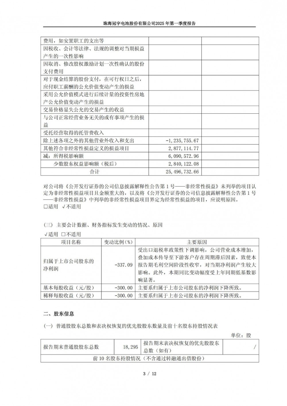 珠海冠宇表示,受出口退税率政策性下调影响,公司营业成本增加,叠加成本传导至下游客户存在周期滞后因素,致使本报告期毛利空间阶段性收窄,对当期净利润产生较大影响。此外,本期同比变动幅度受上年同期低基数影响显著。
