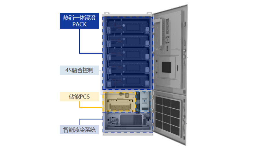 1. 热消一体浸没PACK:采用自研的氟化液绝缘消防液,100%安全可靠。强化对流浸没技术的应用,使得液体量节省高达80%,在保障安全的同时,也极大地降低了系统的成本。