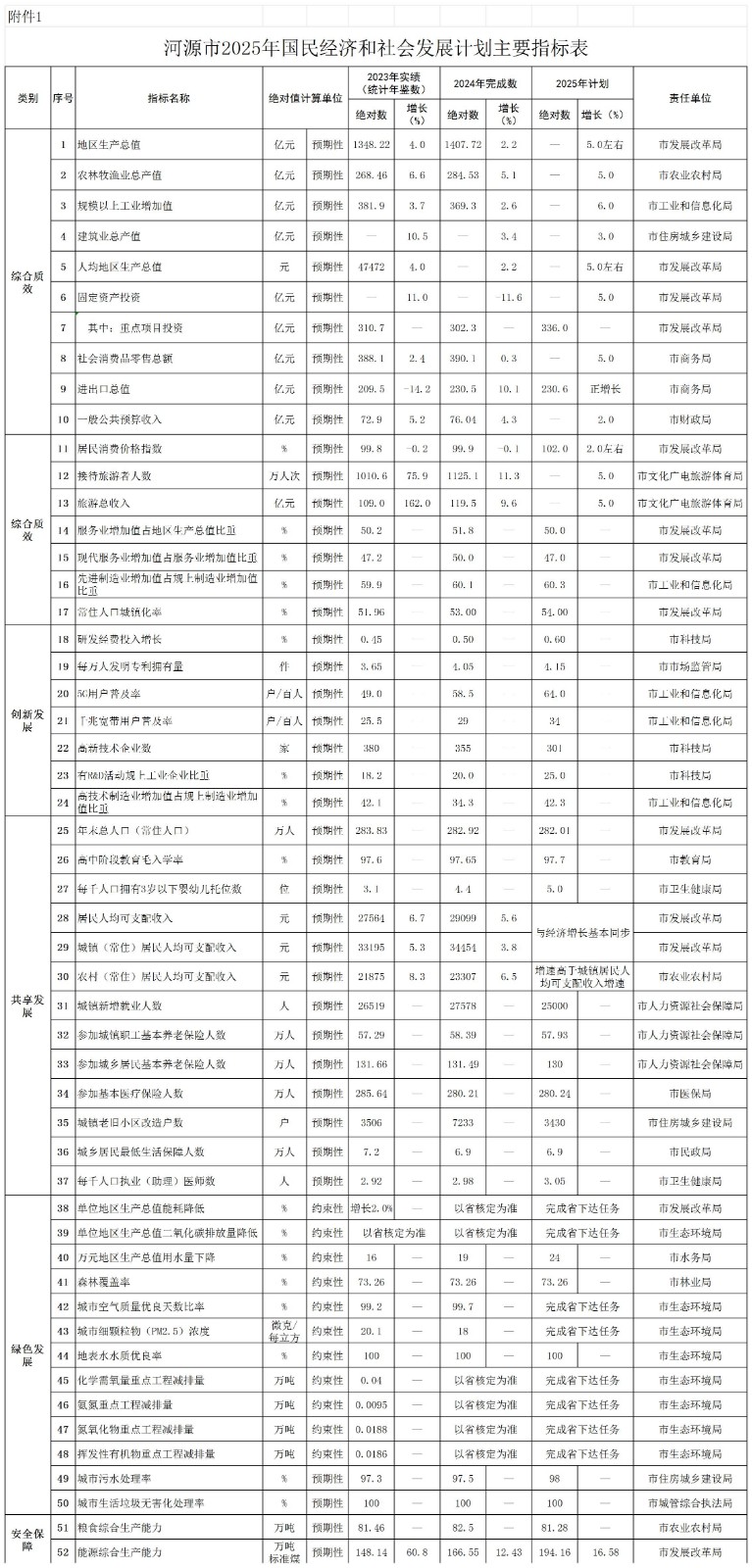 河源市人民政府关于下达河源市2025年国民经济和社会发展计划的通知