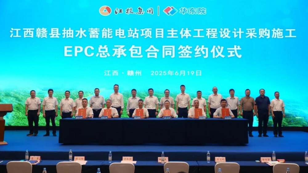 6月19日,江西赣县抽水蓄能电站主体工程设计采购施工EPC总承包合同签约仪式在江西赣州举行,本次合同金额46.7亿元。赣能股份党委书记、董事长、总经理宋和斌,党委委员、副总经理李根东,赣县区政府有关领导、华东勘测设计院党委副书记杜运领及参建各方有关负责人等出席仪式并见证合同签订。