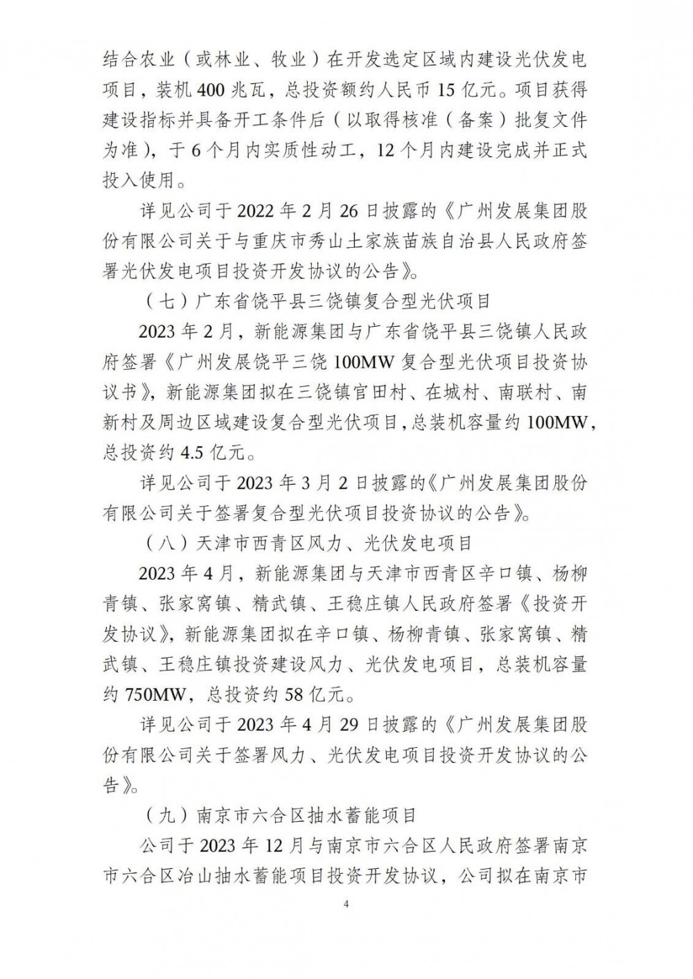 (八)天津市西青区风力、光伏发电项目已于 2025 年 3 月正式开工,正在推进项目建设。