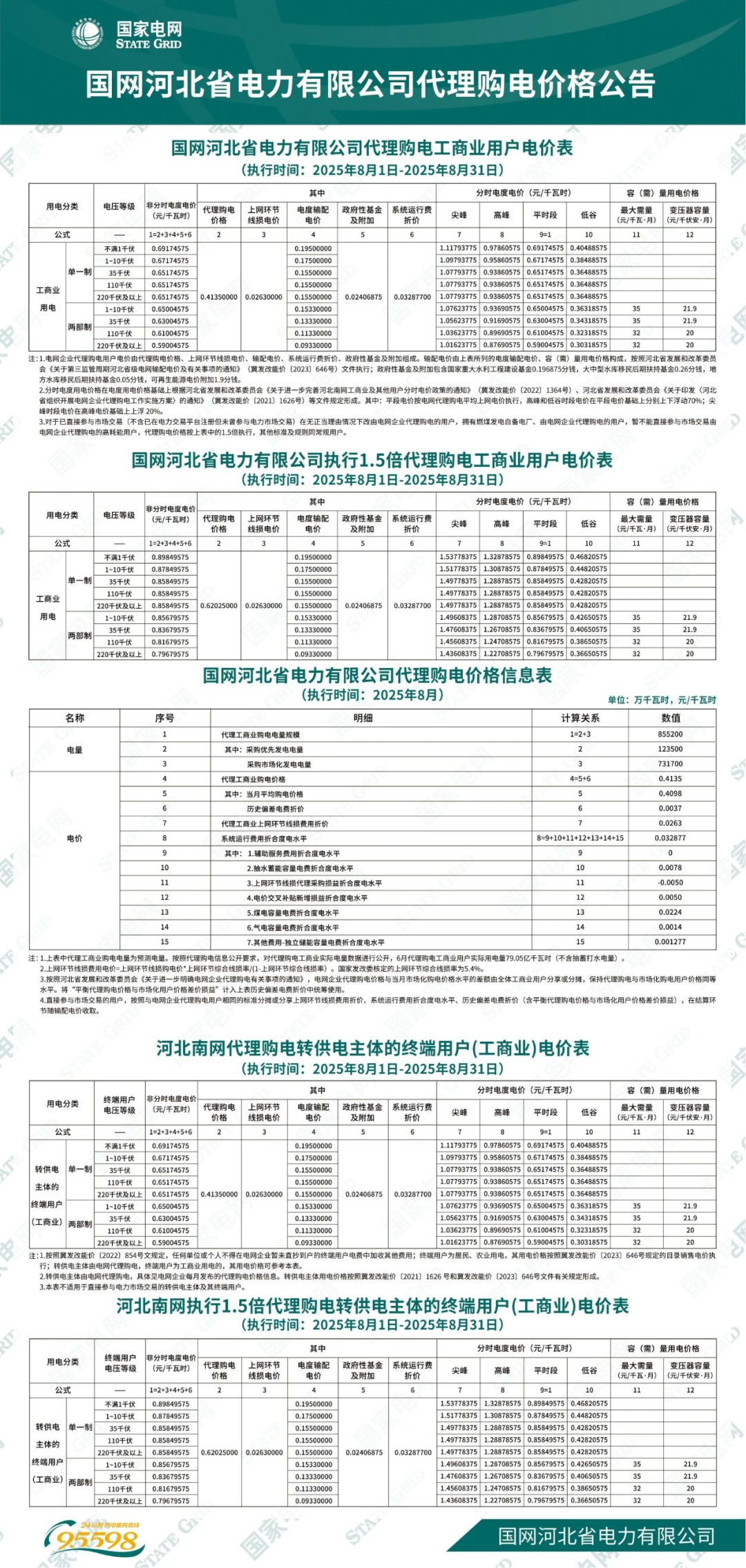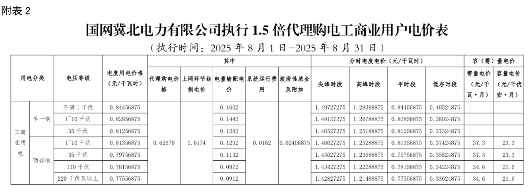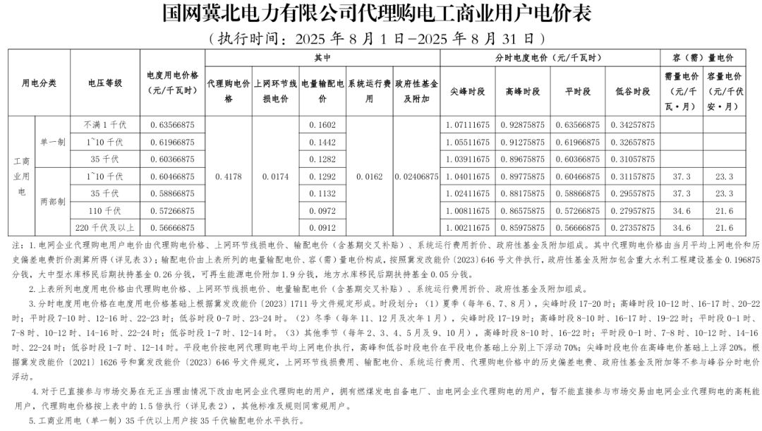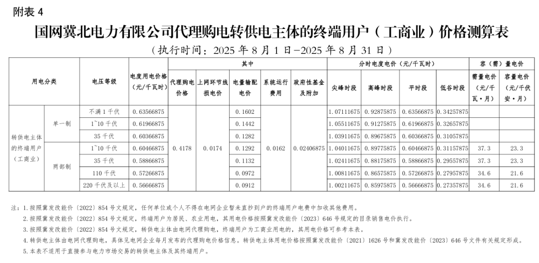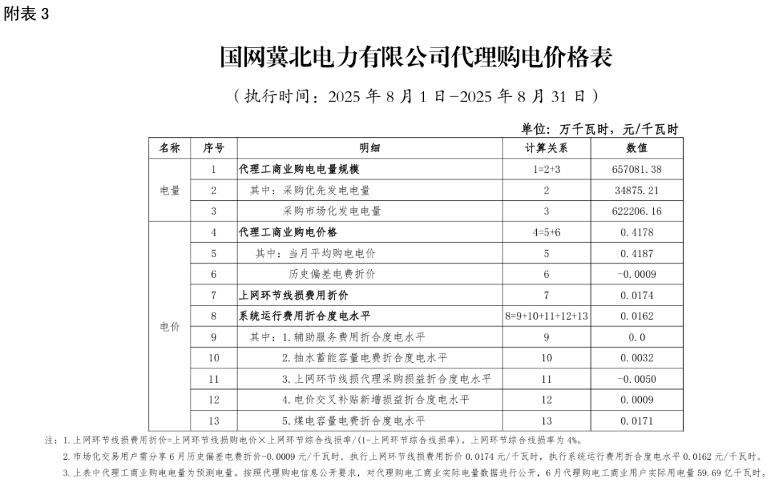 日前,2025年8月全国各地公布电网企业代理购电价格。
