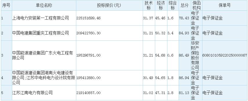 7、拟确定中标人:中国能源建设集团湖南火电建设有限公司;江苏中电科电力设计院有限公司