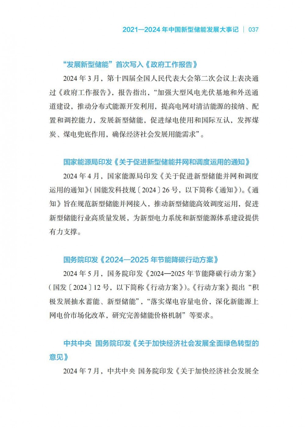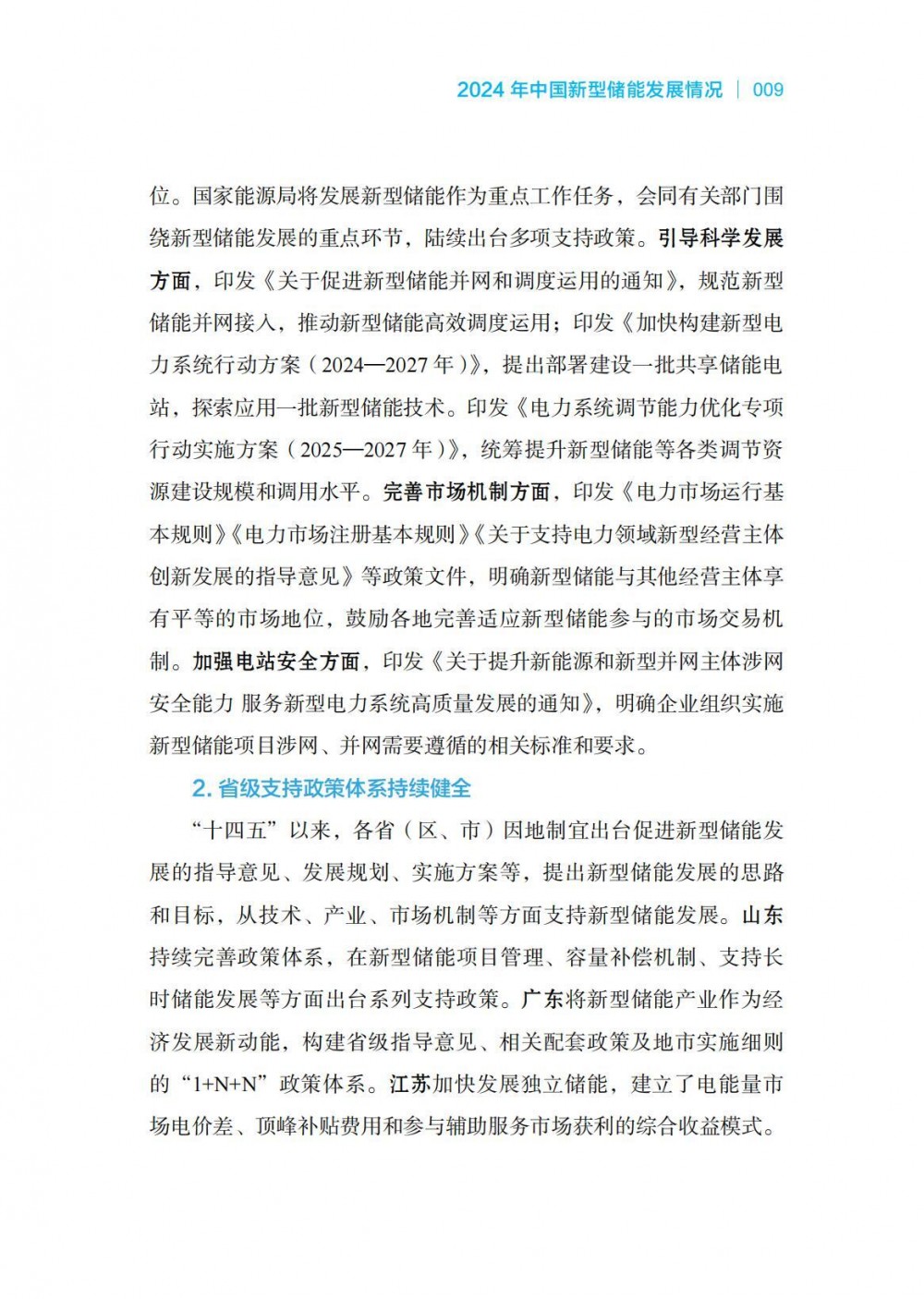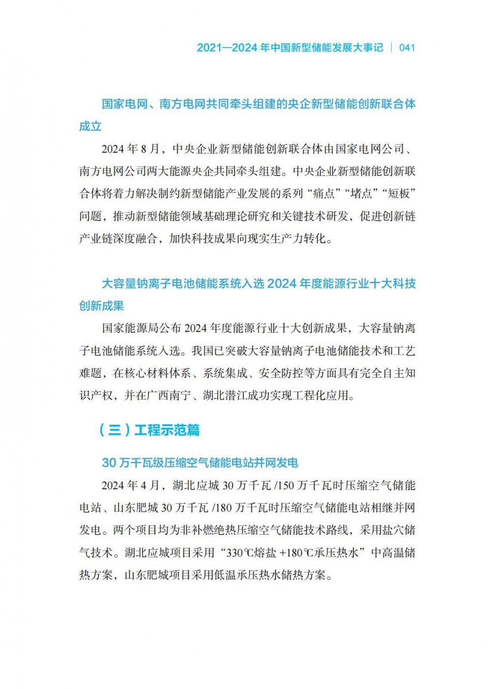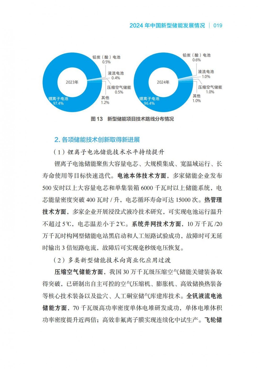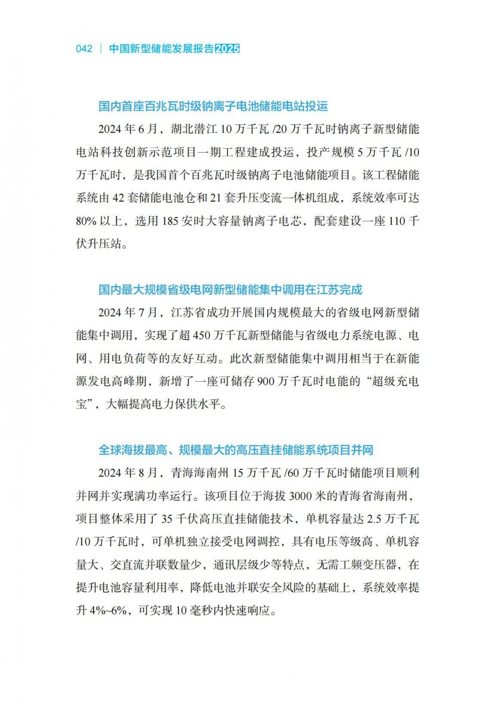 报告显示,新型储能装机规模连年翻番。截至 2024 年底,全国已建成投运新型储能项目累计装机规模达7376 万千瓦 /1.68 亿千瓦时,约为“十三五”末的 20 倍,较 2023 年 底增长超过 130%,全年新增新型储能装机 4237 万千瓦 /1.01 亿千瓦 时。全国新型储能平均储能时长 2.3 小时,较 2023 年底增加约 0.2 小 时,“十四五”以来储能时长呈上升趋势。