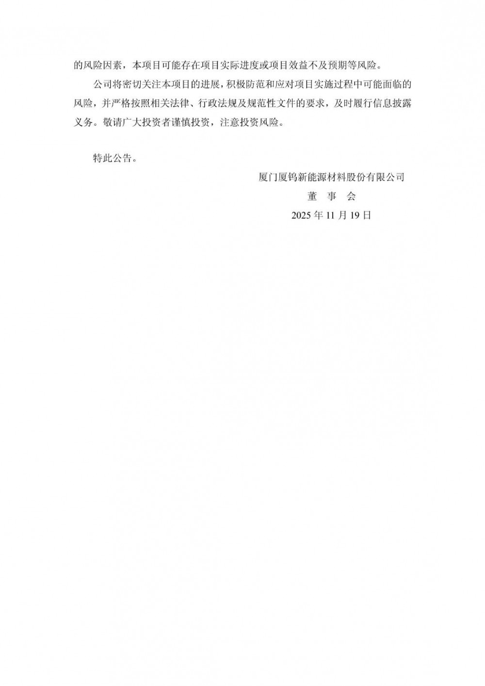 厦钨新能表示,本项目的投资可以帮助公司布局高性能电池材料,促进公司创新,提高生产效率,提升市场竞争力,拓展新的市场,吸引更多客户和合作伙伴,为公司未来发展奠定坚实基础。