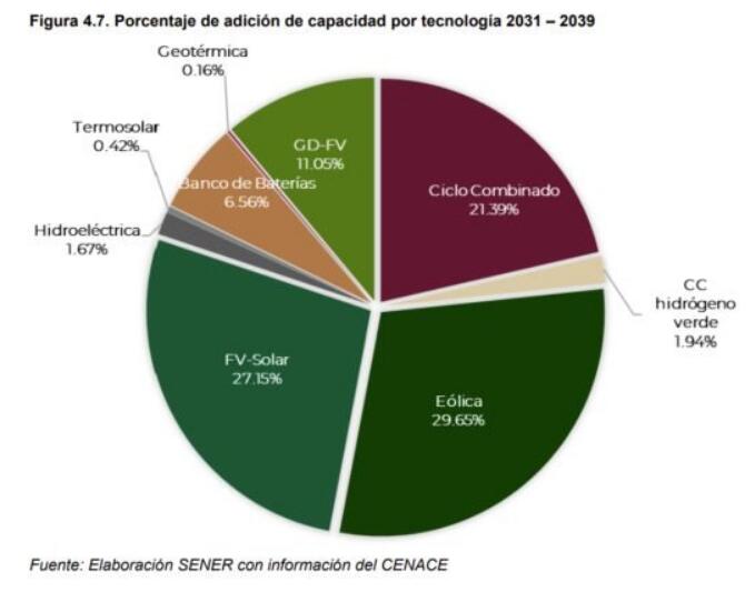 太阳能光伏技术将是此次扩建中最具活力的组成部分,约占新增可再生能源装机容量19,954兆瓦的58.3%。紧随其后的是风电,预计将新增4,317兆瓦,占新增可再生能源装机容量的21.6%,使墨西哥到2030年风电装机容量至少达到10吉瓦,几乎是目前运行水平的两倍。该计划还预计中等规模水电、高效热电联产和地热开发也将得到发展,所有这些项目都将得到政府的大力支持。