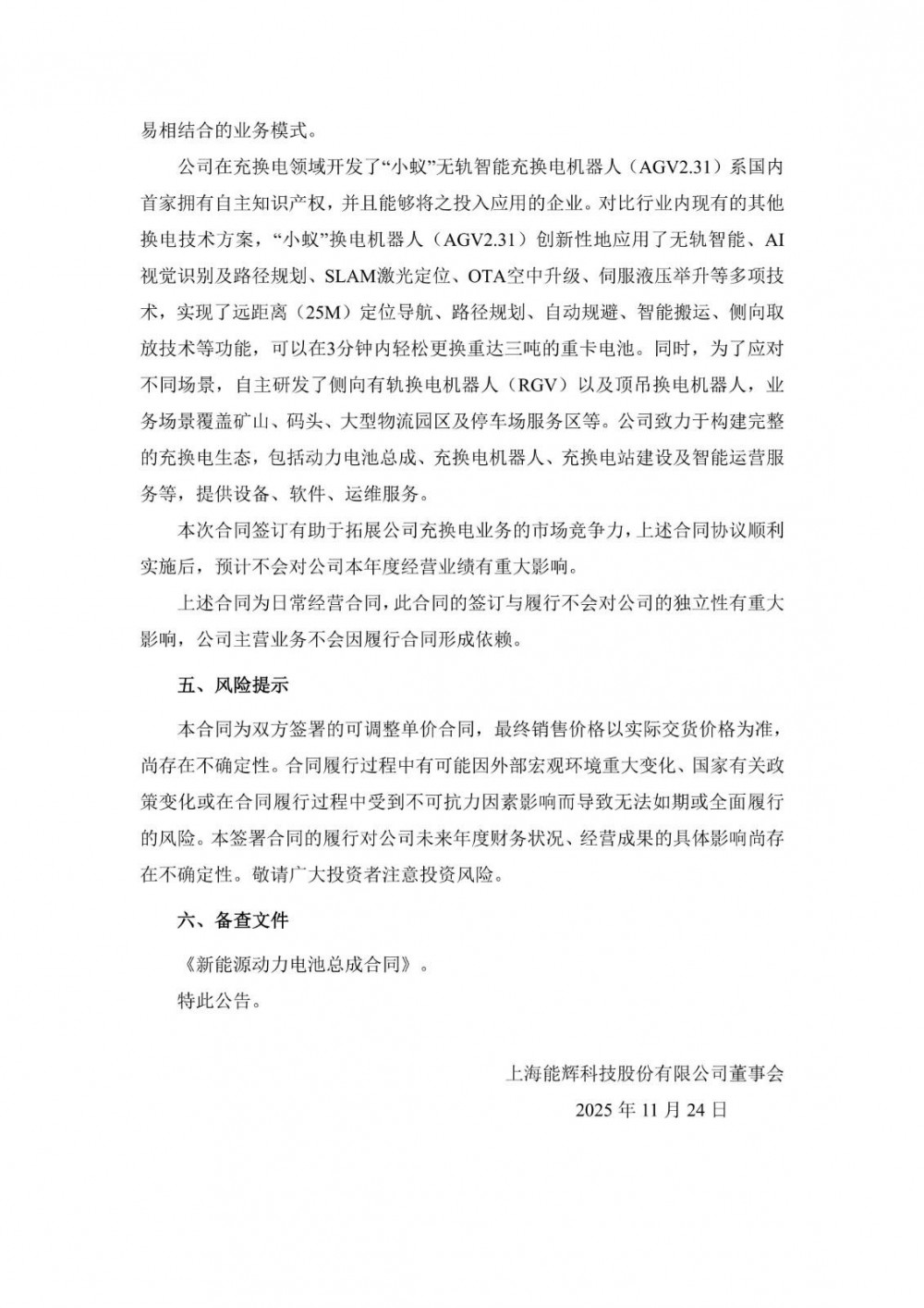 能辉科技表示,本次合同签订有助于拓展公司充换电业务的市场竞争力,上述合同协议顺利实施后,预计不会对公司本年度经营业绩有重大影响。