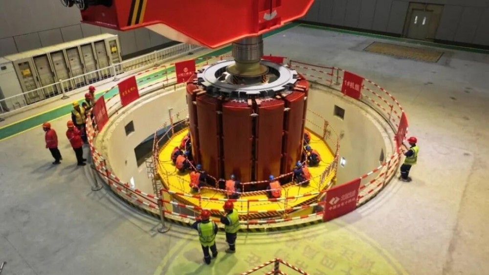 另一个需要吊装的“大块头”便是抽水蓄能机组最核心部件之一——转子。天台抽蓄电站机组转子直径4.996米、重481吨,是机组安装过程中吊装重量最大的部件。