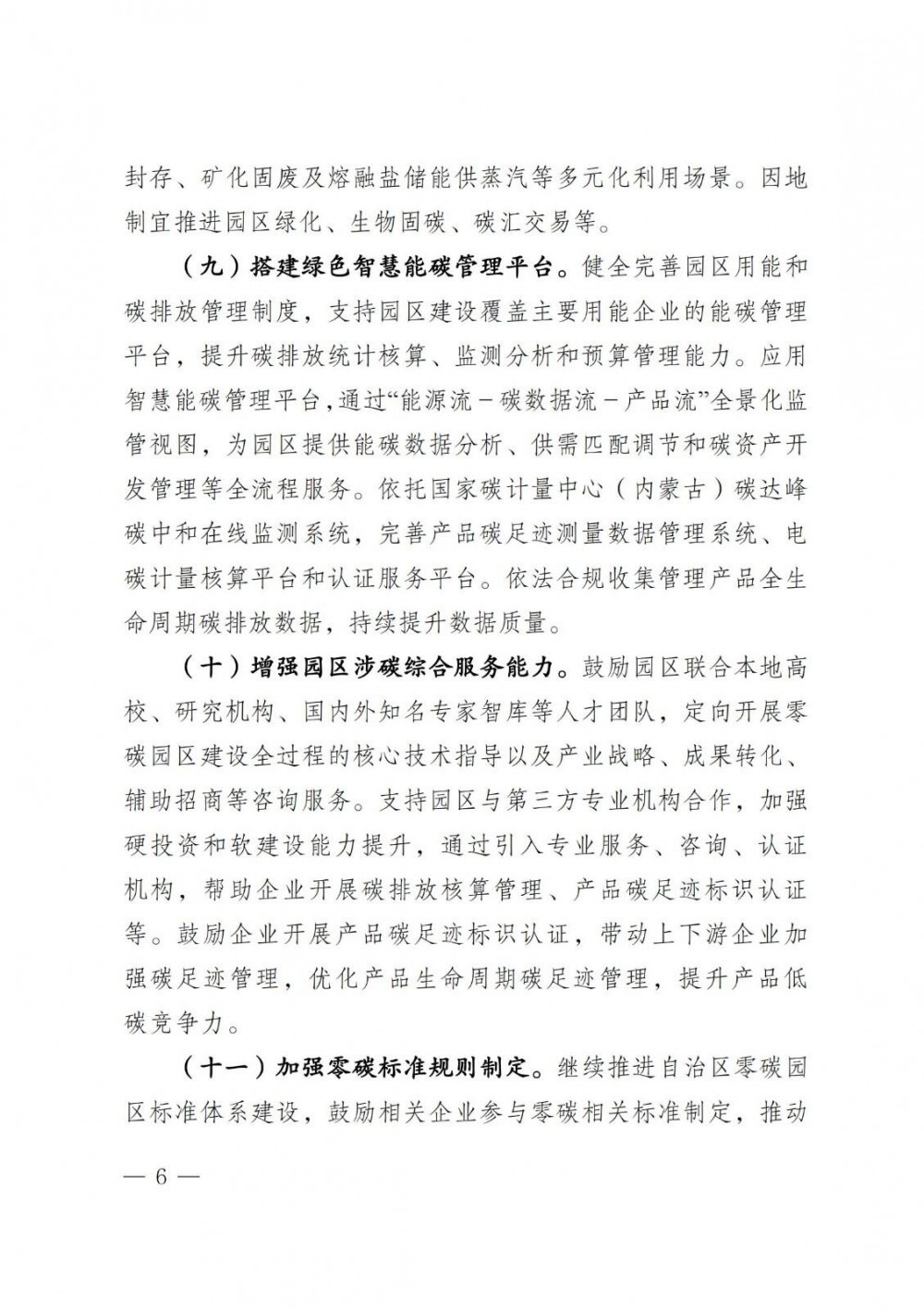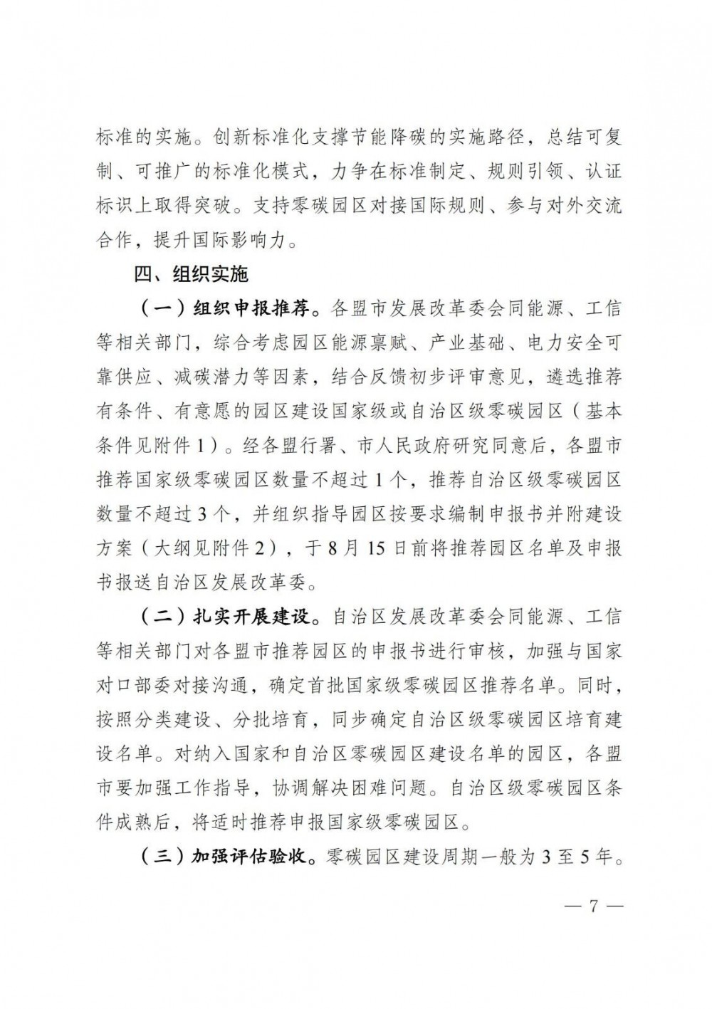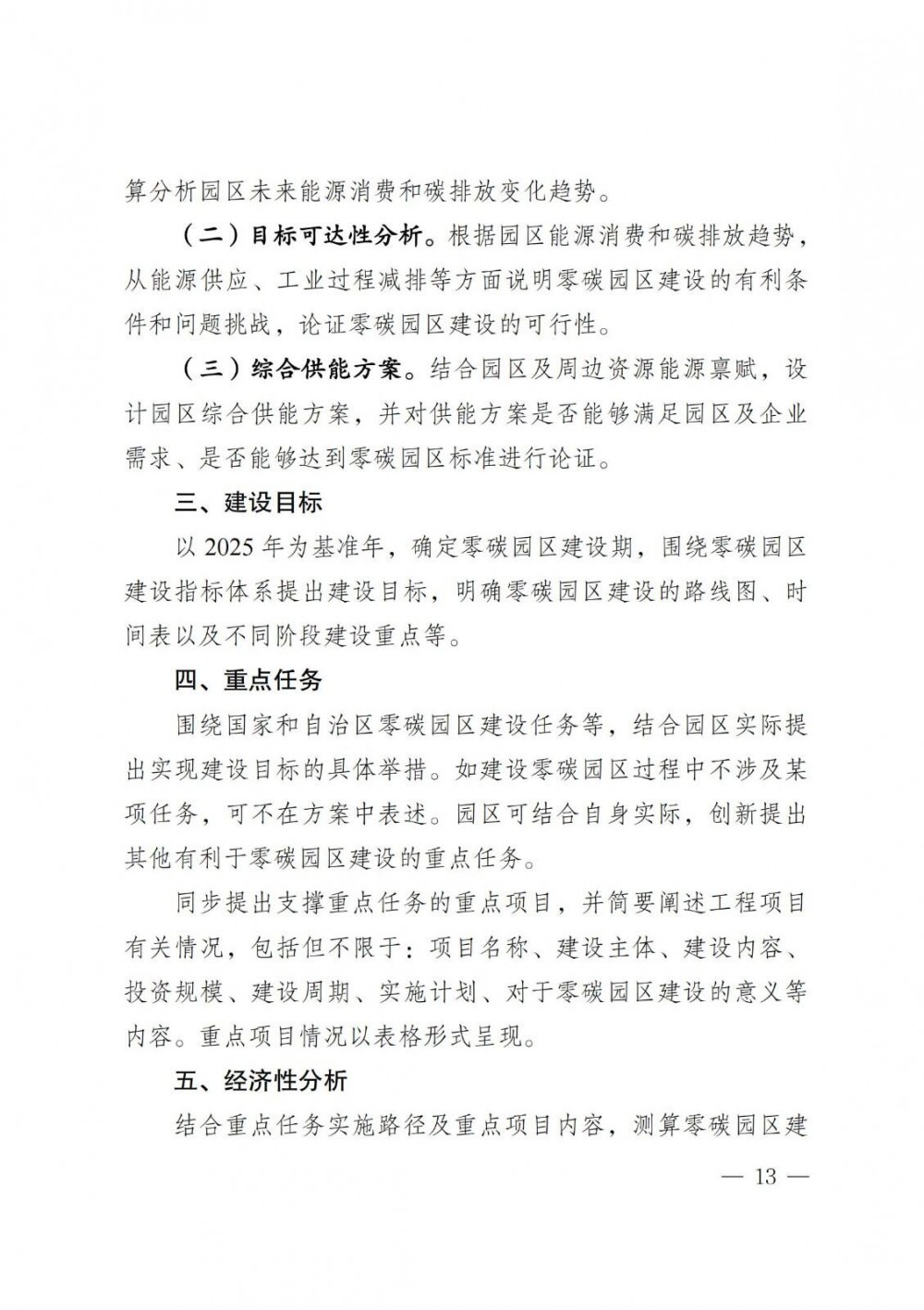 内容指出,推动项目落地。准确把握零碳园区定位,聚焦零碳园区建设目标,合理设定建设任务和政策措施,谋划一批标志性、牵引性重大项目,增强园区整体绿电消纳能力。集聚绿色产业。坚持“高标准、少而精”“宽进严出”原则,鼓励不同类型园区广泛参与,通过培育建设一批国家级和自治区级零碳园区,发挥示范引领作用。