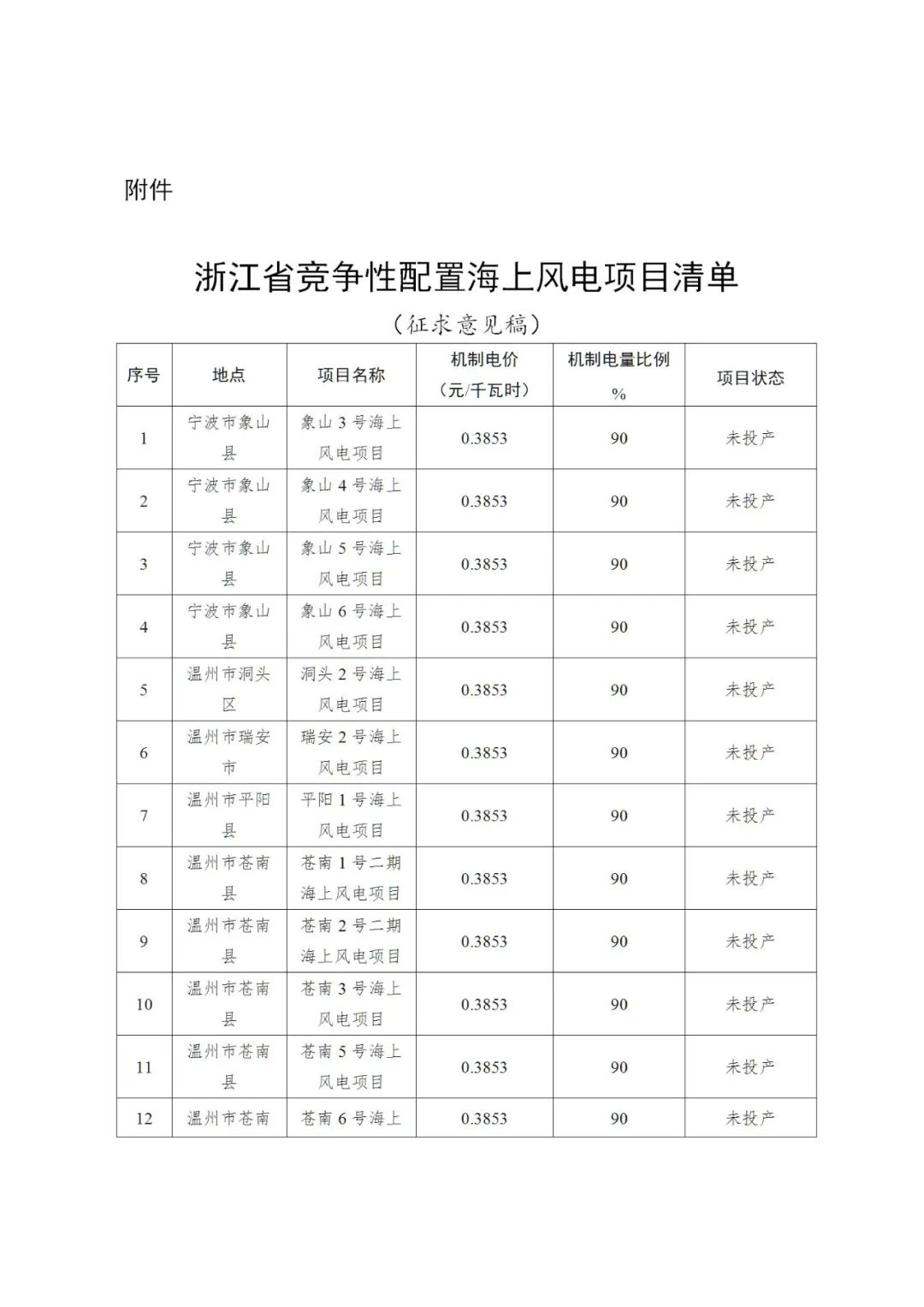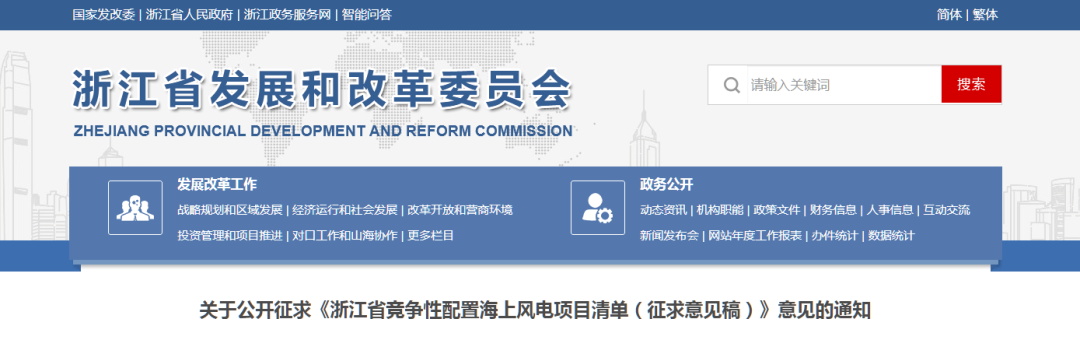 关于公开征求《浙江省竞争性配置海上风电项目清单(征求意见稿)》意见的通知