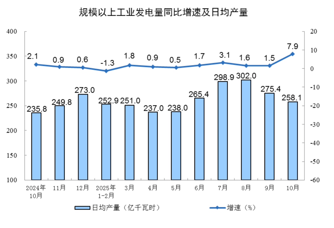 电力家获悉,11月14日,国家统计局发布《2025年10月份能源生产情况》和《2025年10月份规模以上工业增加值增长4.9%》。
