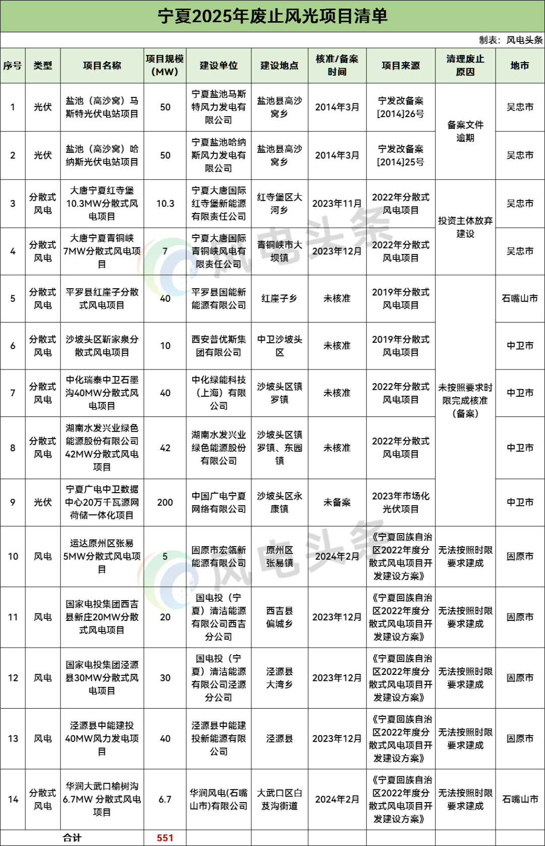 据电力家不完全统计,2025年宁夏累计废止551MW风光项目。