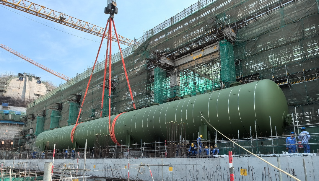 2025年05月09日12时15分,华能昌江核电二期工程项目4号机组除氧器吊装就位,整个吊装过程安全、质量可控,为后续4号机组常规岛相关主体结构完成及二回路管道施工奠定了坚实的基础。