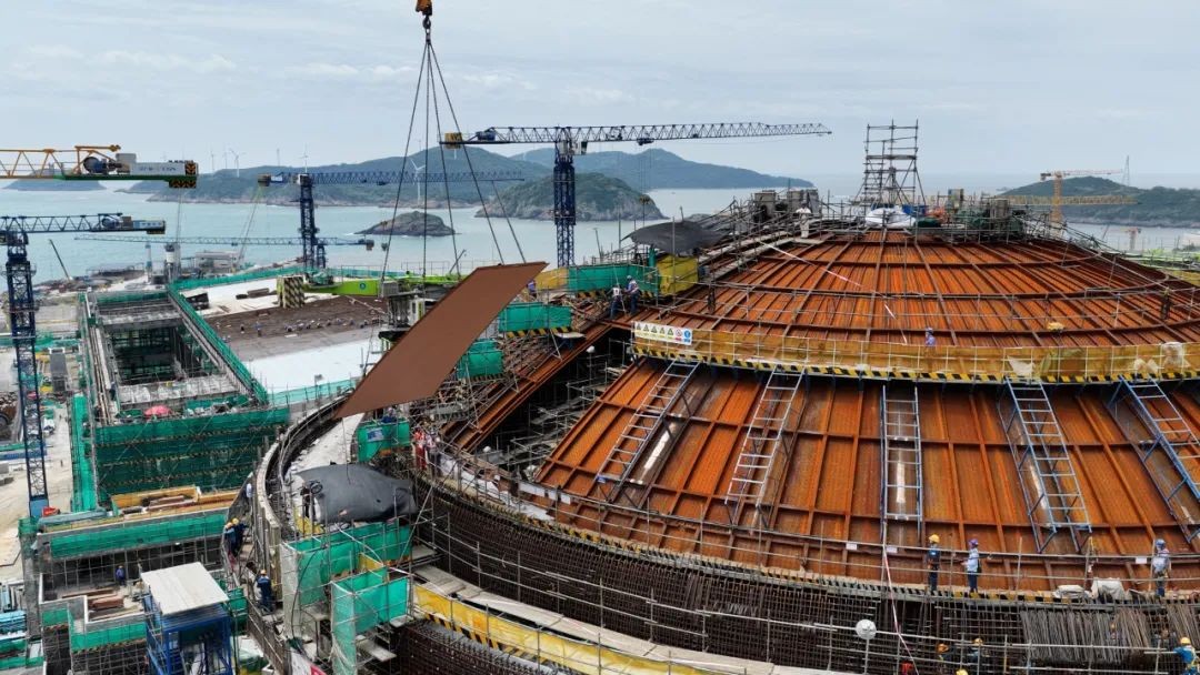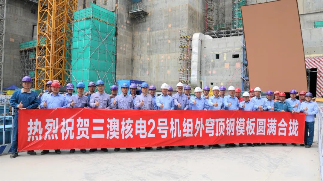 2025年5月27日10时33分,随着最后一块钢模板分块嵌入外穹顶,中核华兴承建的三澳核电项目2号机组外穹顶钢模板圆满合拢,为2号机组穹顶全面封顶奠定了坚实的基础。