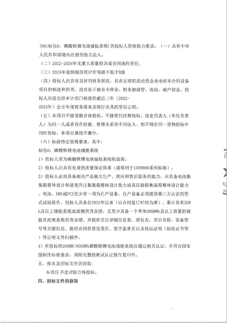 投标人资质要求投标人须为磷酸铁锂电池储能系统制造商。投标人必须具备相关产品独立生产、供应和售后服务的能力,应具备电池集装箱整体设计和逆变升压集装箱整体设计能力或高压级联集装箱整体设计能力电池、EMS或PCS至少有一项为自产设备,自产设备必须提供第三方认证的型式试验报告。