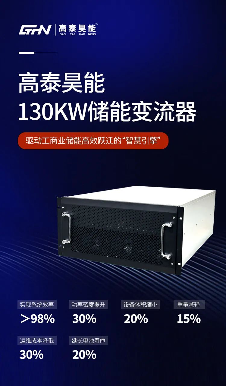 储能变流器(PCS)作为连接可再生能源与用户侧的核心枢纽,正经历技术迭代与市场扩容的双重蜕变。高泰昊能深耕储能电子行业领域,基于对行业痛点的深度洞察,推出集高效能、高可靠、高智能于一体的130KW系列储能变流器,以全栈自研技术体系破解工商业储能系统的效率瓶颈与适配难题,为新型电力系统建设提供兼具经济性与前瞻性的解决方案。