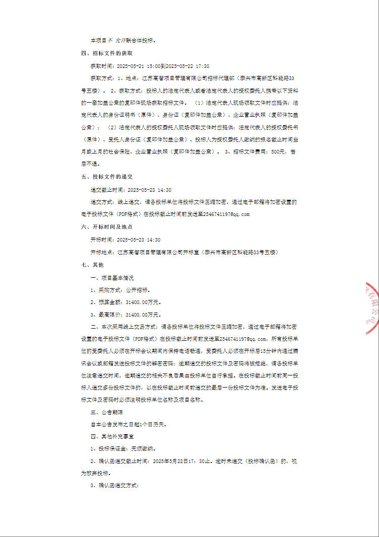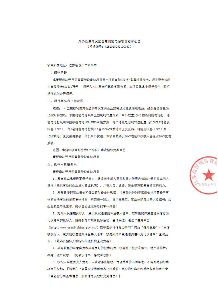 5月21日,黄桥经济开发区智慧储能电站项目招标公告发布。