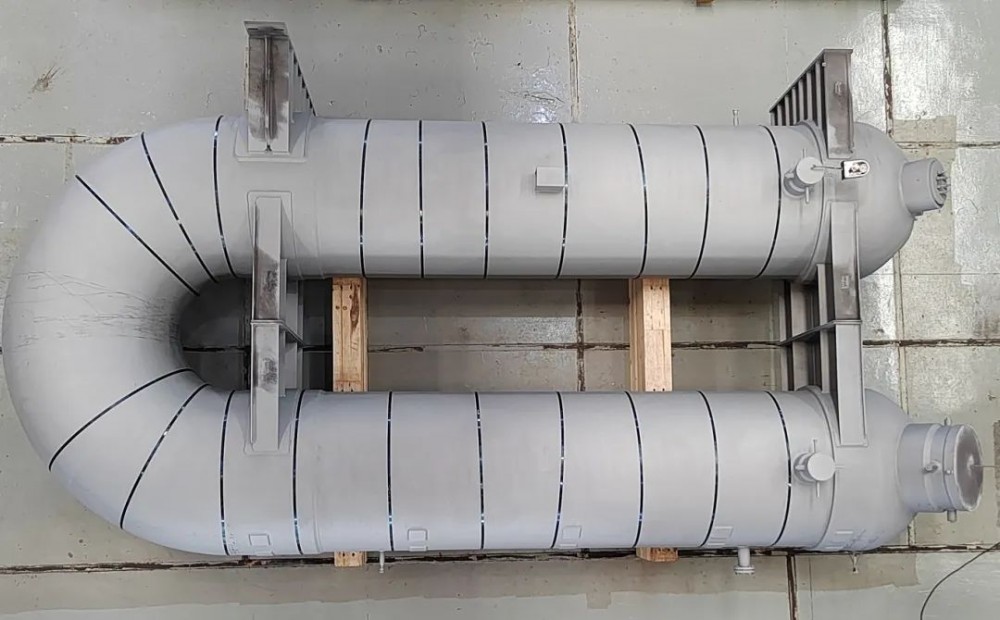 该项目换热器管系采用特殊结构设计,有效提升热能转换效率。该设备属于“发卡式”双壳体结构,是公司目前为止制造的最大直径发卡式结构换热器,其制造工艺与常规发卡式换热器存在较大差别,难度更大,创下厂内同类产品制造新纪录。