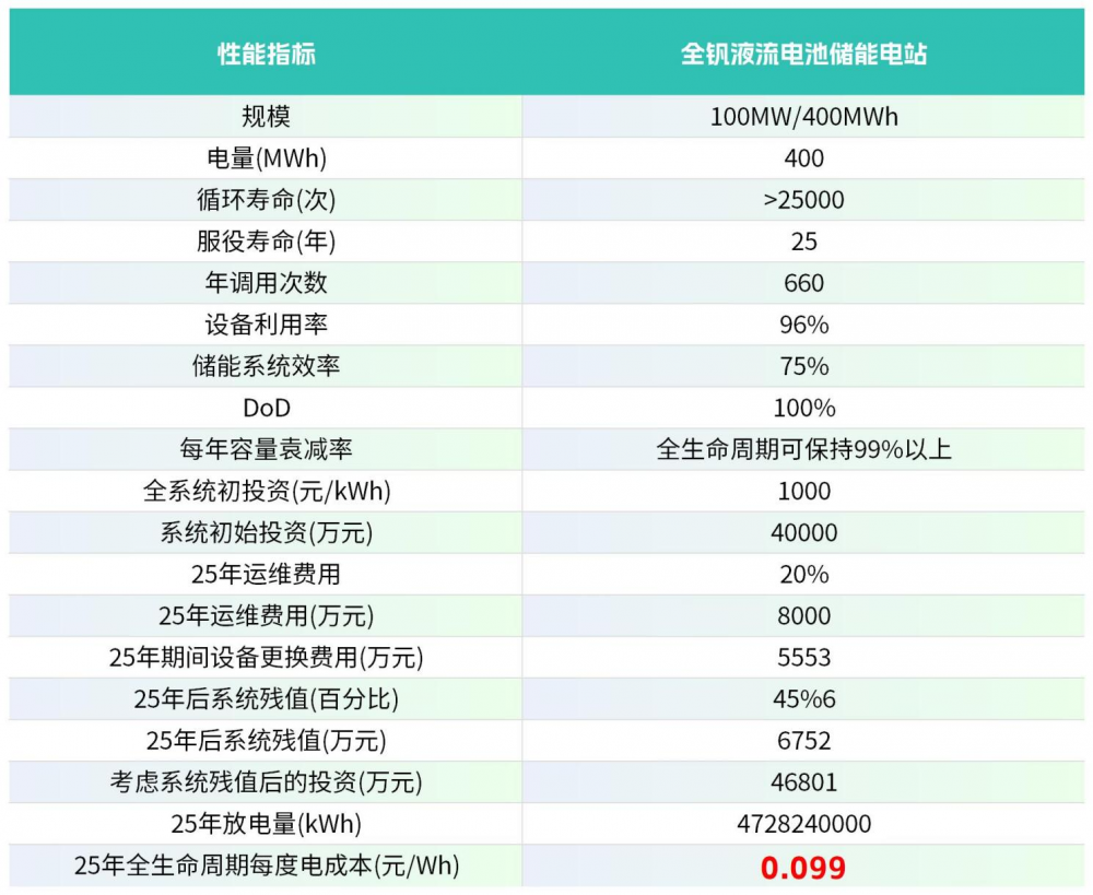 4小时全钒液流储能系统全生命周期度电成本