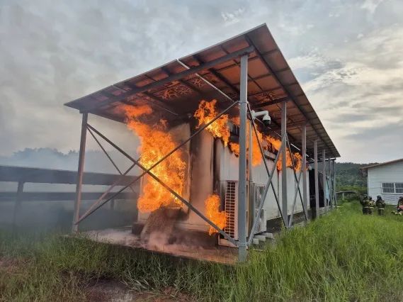 火灾发生在太阳能发电厂一楼的储能室内,总建筑面积为36平方米。该建筑为夹层板结构,屋顶为面板,储能室和附近36平方米的太阳能电池板一起燃烧。