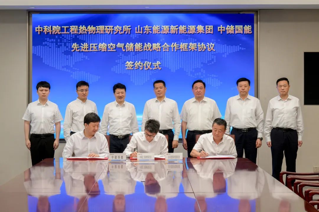 6月9日,中国科学院工程热物理研究所、中储国能与山东能源新能源集团在山东济南,签署先进压缩空气储能战略合作框架协议。根据协议,三方本着优势互补、互利共赢、共同发展的原则,在新能源及压缩空气储能项目开发、项目投资建设、新技术示范应用、人才交流合作等方面开展合作,助力以新能源为主体的新型电力系统建设,提升新能源消纳能力。