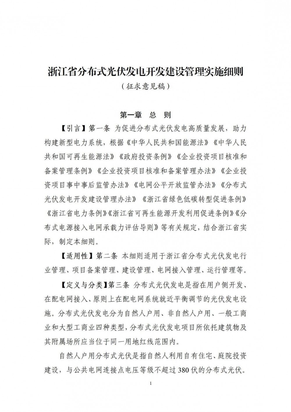 关于公开征求《浙江省分布式光伏发电开发建设管理实施细则(征求意见稿)》意见建议的通知