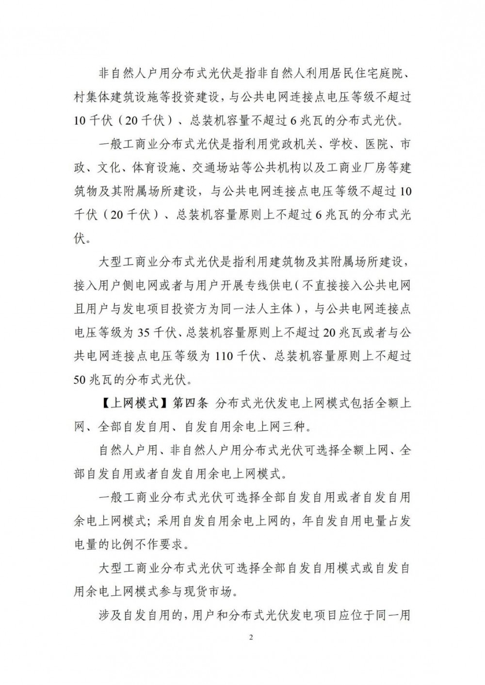 意见稿明确,一般工商业分布式光伏可选择全部自发自用或者自发自用余电上网模式;采用自发自用余电上网的,年自发自用电量占发电量的比例不作要求。大型工商业分布式光伏可选择全部自发自用模式或自发自用余电上网模式参与现货市场。