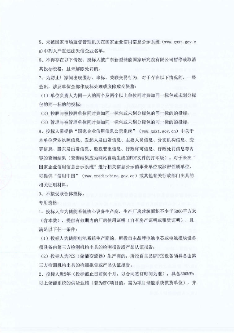 要求投标人近5年(投标截止日前60个月,以合同签订时间为准),具备500MWh以上储能系统的供货业绩(若为EPC项目的,需为项目储能系统供货单位)。