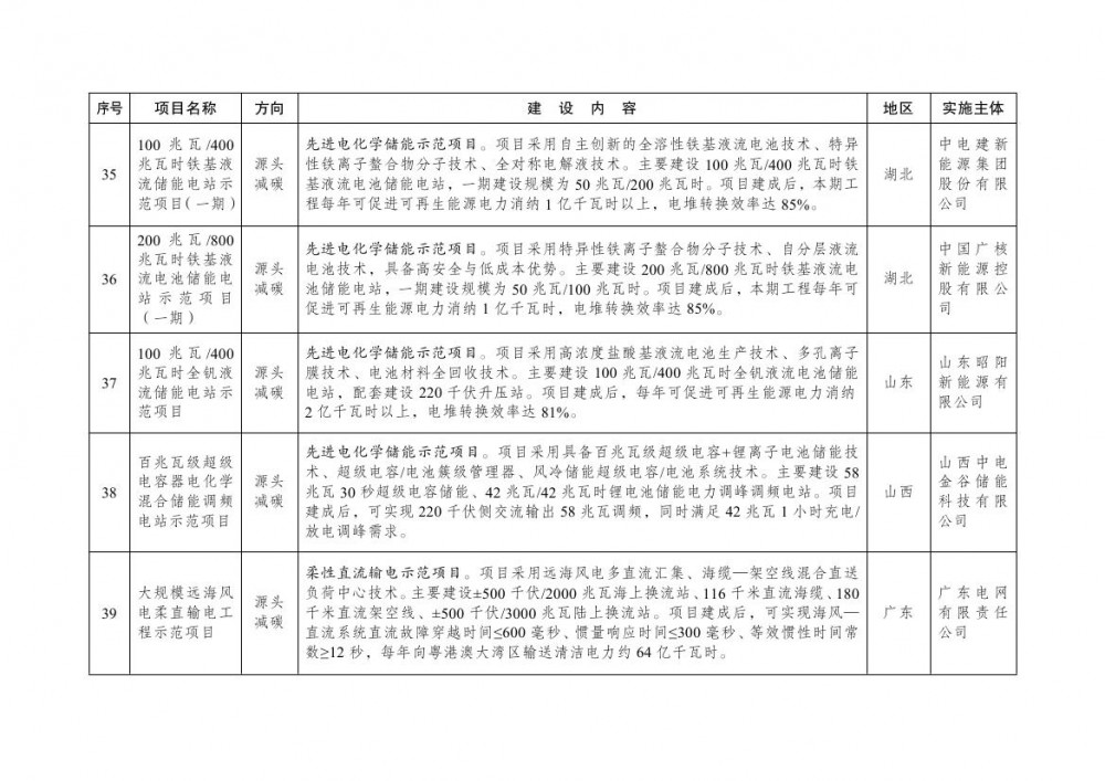 公示的项目清单中包括多个储能项目,500 兆瓦/2000兆瓦时构网型混合储能示范项目、295 兆 瓦 /590兆瓦时构网型储能电站示范项目、构网型风光储主动支撑与汇集组网示范项目、350 兆瓦/1400兆瓦时石灰岩地层储气库压缩空气储能电站示范项目、两缸分列双离合透 平 350 兆 瓦兆瓦时压缩空气储能示范项目(一期)、压缩空气飞轮电化学混合储能调峰调频电站示范项目、2×300 兆瓦/1800兆瓦时沉渣空隙盐穴压缩空气储能电站示范项目(一期)、300 兆瓦/1200兆瓦时先进压缩空气储能示范项目、60 兆瓦/600 兆瓦时液态压缩空气储能示范项目、200 兆瓦压缩二氧化碳熔盐储热电化学混合储能示范项目、100 兆瓦气液互转二氧化碳储能电站示范项目、100 兆瓦/400兆瓦时铁基液流储能电站示范项目(一期)、200兆瓦/800兆瓦时铁基液流电池储能电站示范项目(一期)、100 兆瓦/400兆瓦时全钒液流储能电站示范项目、百兆瓦级超级电容器电化学混合储能调频电站示范项目、源网荷储一体化和多能互补示范项目、源网荷储一体化及系统友好型新能源电站示范项目、拉果错“零碳提锂”源网荷储示范项目、阿里结则茶卡1 万吨盐湖提锂高海拔高寒综合能源示范项目等多个储能项目。