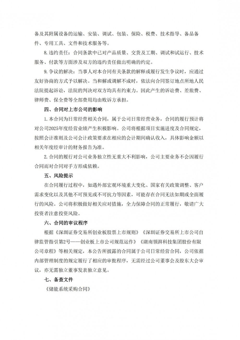 领湃科技表示,本合同为日常经营相关合同,属于公司日常经营业务,合同的履行预计将对公司2025年度经营业绩产生积极影响。公司将根据项目实施进度及合同规定,按照会计准则及公司会计政策要求在相应的会计期间确认收入,具体影响金额以相关年度经审计的财务报告为准。