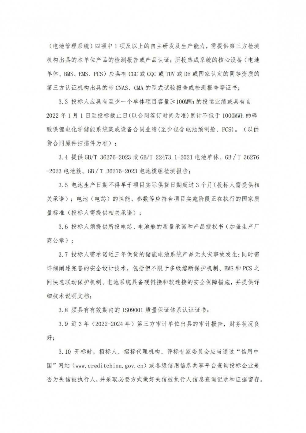 报告要求投标人须具备电池单体、PCS(储能变流器)、EMS(能量管理系统)、BMS(电池管理系统)四项中1项及以上的自主研发及生产能力。