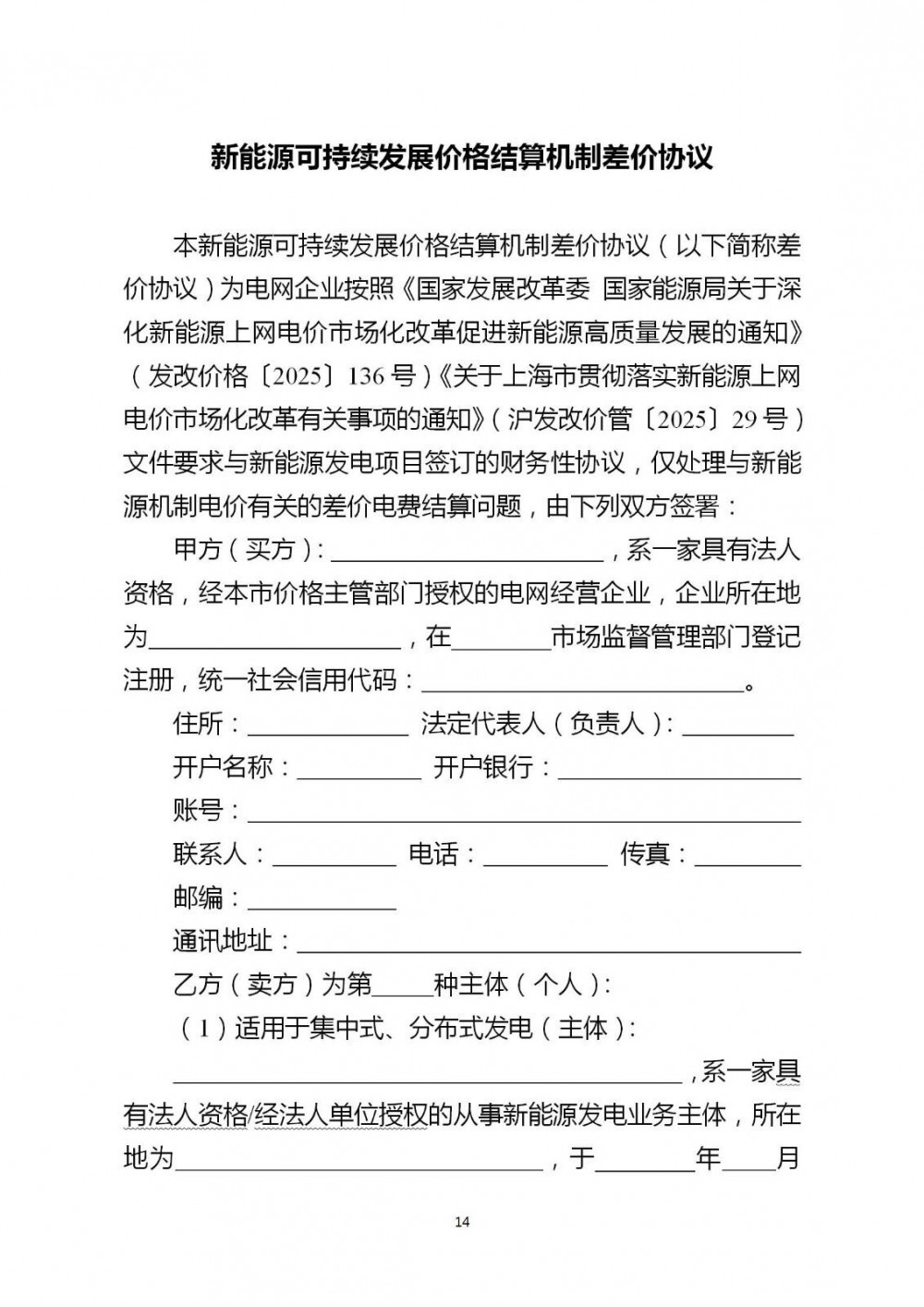 上海市新能源可持续发展差价结算工作方案