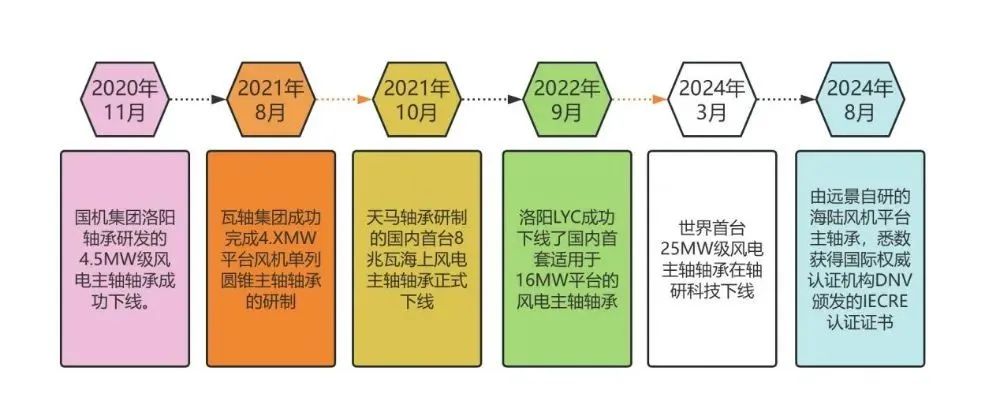 第四阶段(从2020年至今):中国风电设备企业涌现出一批以远景能源为代表的立志于研发风电轴承设备的企业,让中国风电轴承设备国产化进程不断加快。