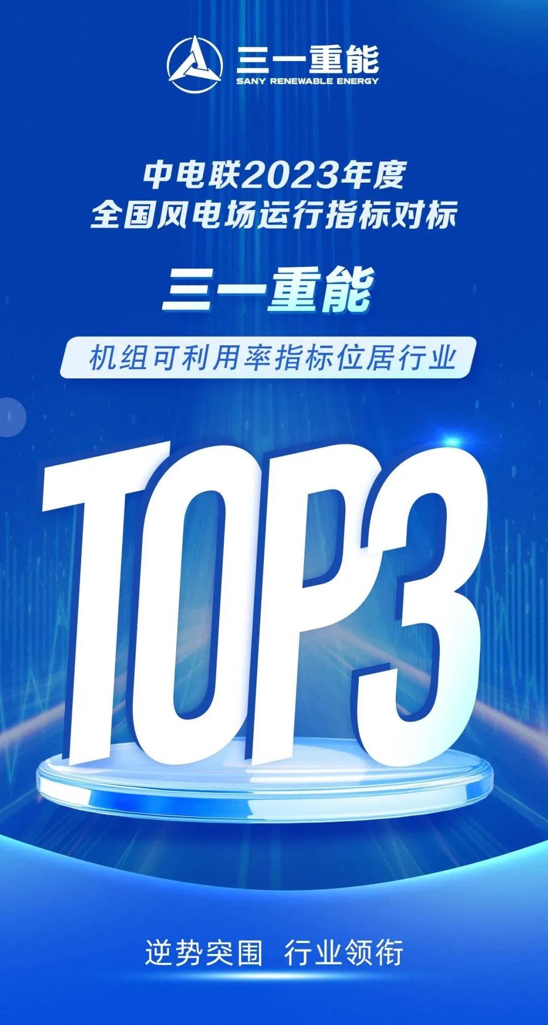 近日,中国电力企业联合会(以下简称:中电联)正式公布了2023年度电力行业风电运行指标对标结果。在全国区域机组可利用率指标最优主机厂榜单中,三一重能逆势突围、闯入前三。曾经世人眼中的行业黑马正在用每年不断刷新的纪录,成为中国风电的常青树。