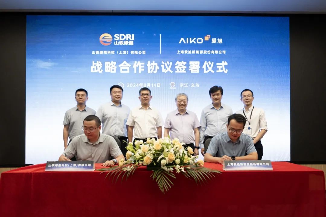 8月14日,上海爱旭新能源股份有限公司(以下简称“爱旭股份”)与山铁绿能科技(上海)有限公司(以下简称“山铁绿能”)于浙江义乌正式签署战略合作协议,标志着双方将在新能源产业领域展开全面深度合作。爱旭股份高级总监陈力与山铁绿能总经理张风利作为双方代表进行签约,爱旭股份董事长陈刚,山东铁路投资发展控股集团有限公司党委委员副总经理,山东铁路发展基金有限公司党委书记、董事长赵春雷等共同见证了签约仪式。