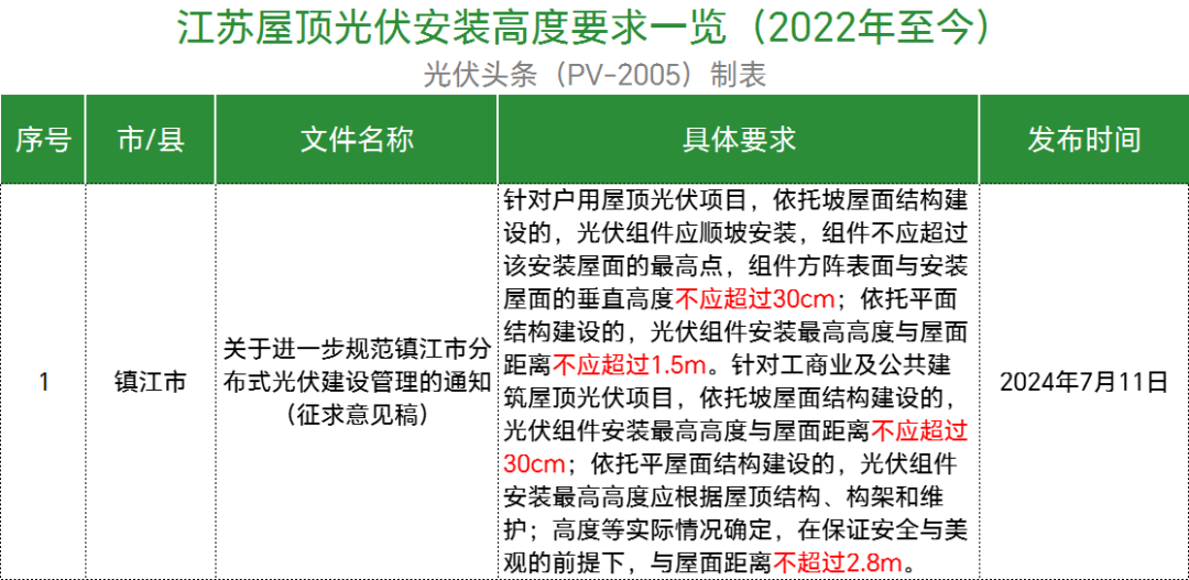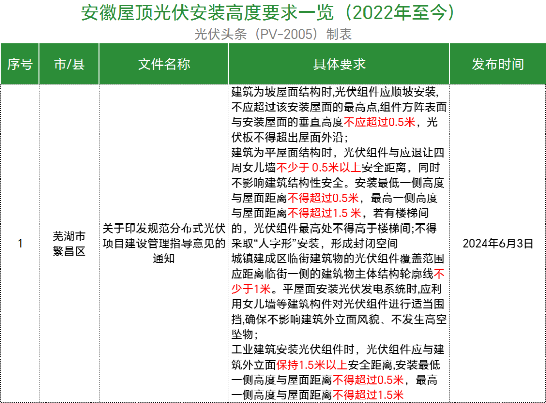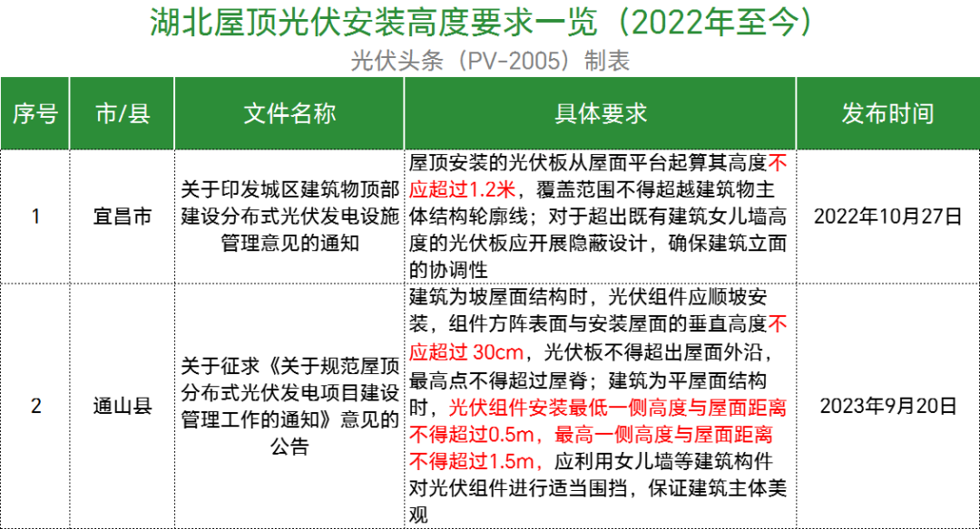 梳理后发现,规定建筑为坡屋面结构时,组件方阵表面与安装屋面的垂直高度不应超过30cm的有湖北通山县、湖南岳阳县、陕西西安市、江西于都县、江西安远县、江西兴国县、江西全南县、江西彭泽县、广东韶关市、广东潮州潮安区、浙江永嘉县、浙江苍南县、浙江瑞安市、浙江永康市、浙江龙港市、浙江海宁市、广西南宁市、广西岑溪市、广西德保县、江苏镇江市、陕西平利县、浙江温州市鹿城区、浙江文成县、浙江诸暨市等地。