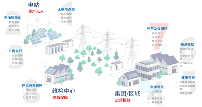 随着新能源行业的规模化发展,新能源场站投资建设步伐加快,独立监控分散运营管理模式已不能适应企业的发展。一方面随着场站装机容量的不断增长,传统的人工运维方式已经无法满足运营需求,无人值班或少人值守的新能源场站已成发展必然趋势;另一方面,随着新能源市场竞争的加剧,降低运维成本、提升运营效率已经成为新能源企业提高竞争力的关键。