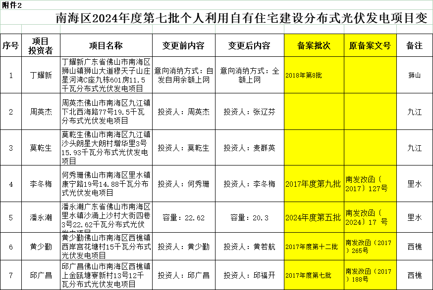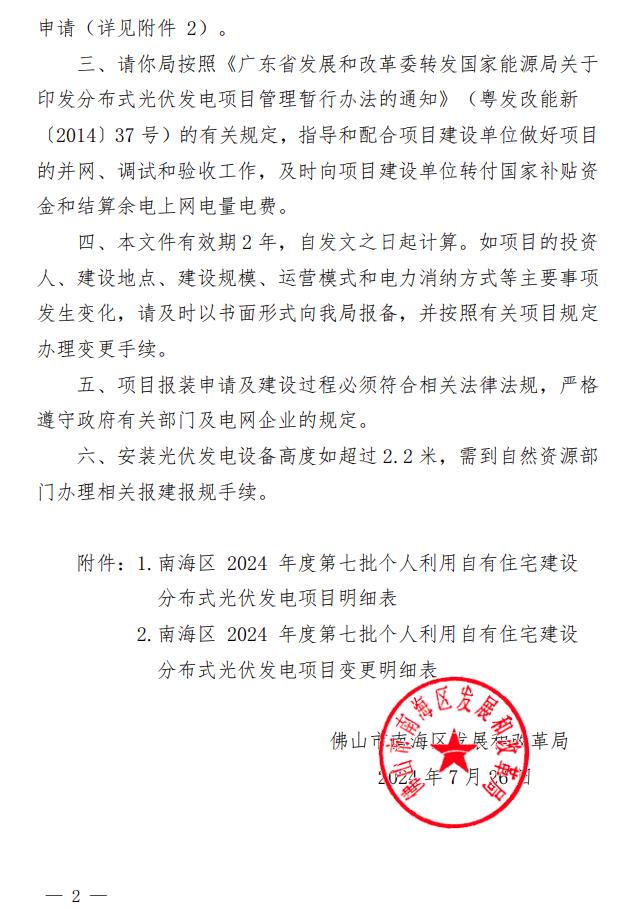 8月19日,广东省佛山市南海区发改局发布《关于2024年度第七批个人利用自有住宅建设分布式光伏发电项目备案申请的复函》,同意南海供电局申报的个人利用自有住宅建设分布式光伏项目备案。本次备案项目12项,装机容量297.54千瓦,总投资105.7万元。