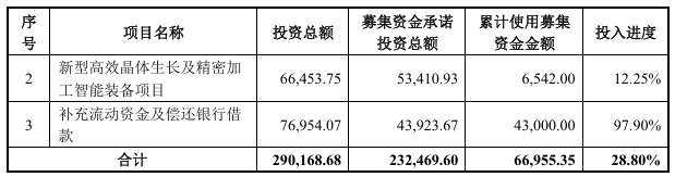 据悉,天通股份2022年非公开发行股票236,868,686股,发行价格为9.90元/股,募集资金金额为人民币2,344,999,991.40元,扣除不含税各项发行费用人民币20,304,037.02元,实际募集资金净额为人民币2,324,695,954.38元。截至2024年6月30日,公司非公开发行股票募投项目的资金使用情况如下: