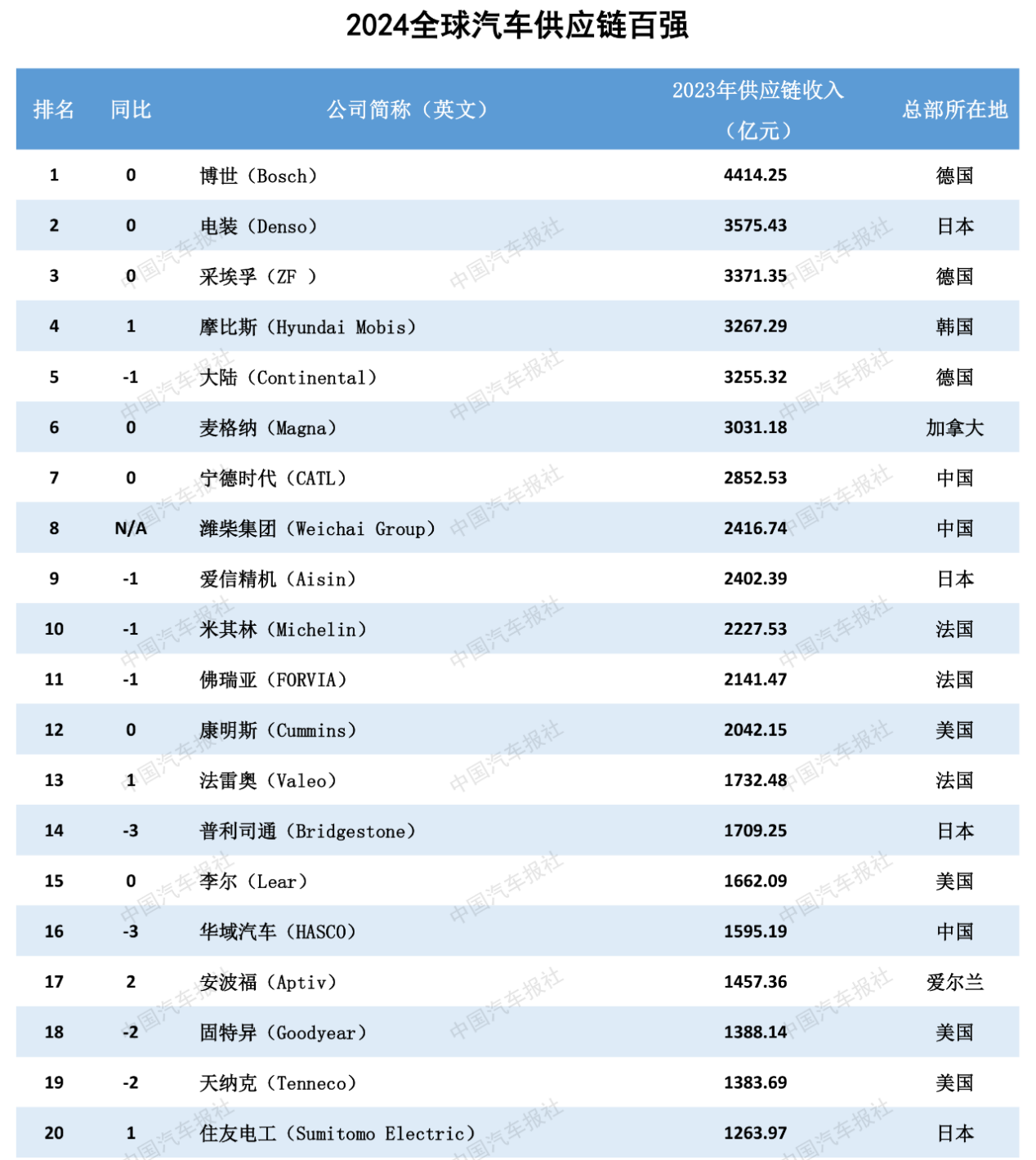 附:2024中国汽车供应链百强、2024全球汽车供应链百强