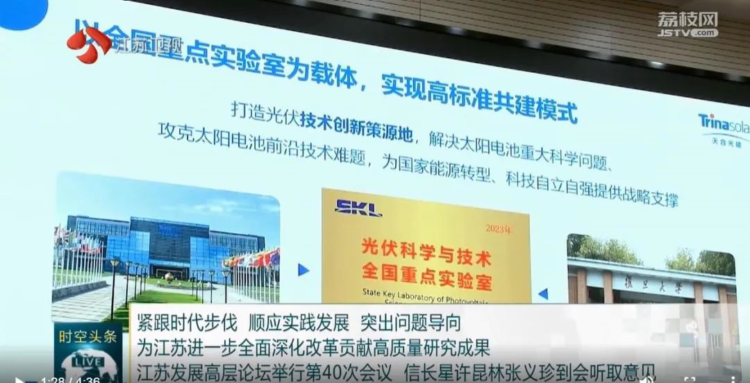 高纪凡指出,绿色低碳新能源产业是国家的发展方向,是江苏发展新质生产力的优势战略性新兴产业,江苏的光伏产业产值占全国近40%,居国内第一,储能产业也走在全国前列,江苏光储智慧能源产业从2023年到2030年预计有2.5倍以上的增长空间,潜力巨大。过去光伏行业历经多轮周期,天合光能始终坚定信念、迎难而上、克服困难、创新突破、穿越周期,实现逆势成长,并且业务持续升级,规模持续增长。目前面临“内卷”和“外堵”双重挑战的新一轮周期,天合光能持续高强度研发投入,高标准共建光伏科学与技术全国重点实验室,联合产业链企业在江苏成立制造业创新中心,实现了i-TOPCon技术与叠层技术的多项领先,前瞻性布局储能产业,推动光储一体化平价稳定供电系统,推进光储氢智慧能源融合发展,创建的美好零碳世界,构建了盈利能力、技术能力、品牌渠道、经营管理能力等多维度领先的护城河,争当光储智慧能源产业,质量发展的探路者和引领者,努力成为世界500强的智慧能源公司,助推中国式现代化江苏新实践。