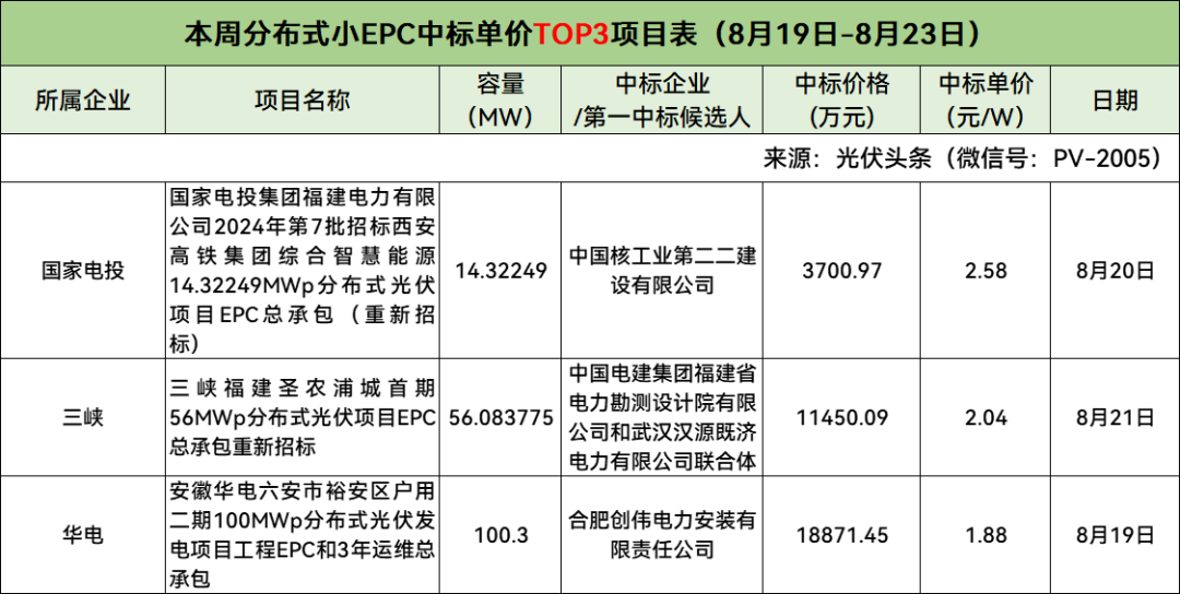 此外,本周分布式小EPC、集中式小EPC中标单价Top3项目具体情况如下:
