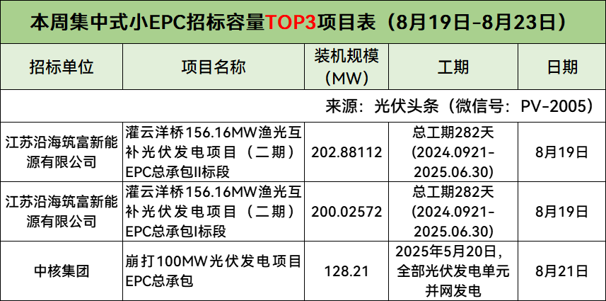 此外,本周分布式小EPC、集中式小EPC招标容量Top3项目具体情况如下: