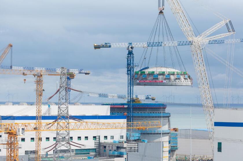 近日,国家电投集团山东核电海阳核电4号机组核岛钢制安全壳顶封头模块吊装就位。至此,核岛主要设备和模块已基本引入完毕,施工由土建转入安装阶段。